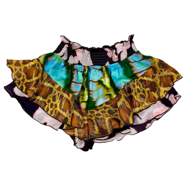 Full, low waisted shorts with elasticated waist and frill detail inserted on legs.