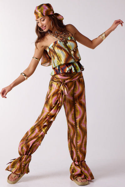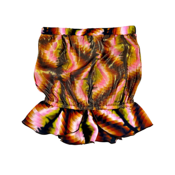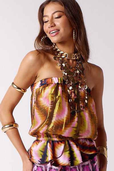 Simple boob tube top with elasticated waist and slight frill/peplum detail.