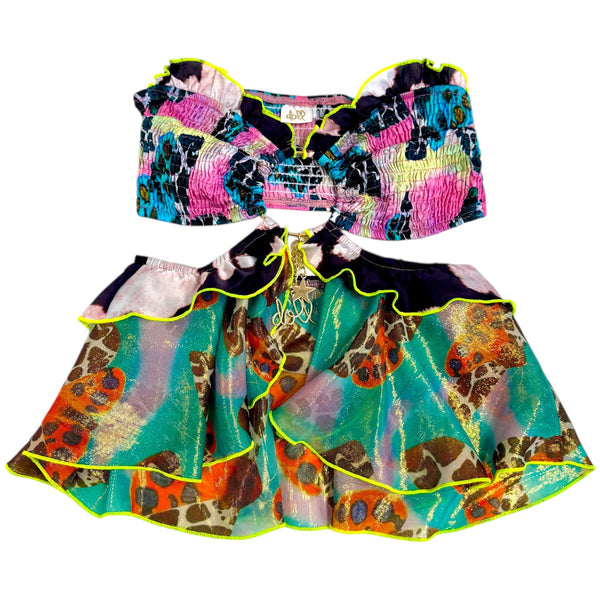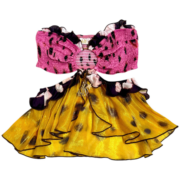 Boob-tube top with Doll charm jewellery attached to centre-front ring, and double tiered 'skirt' detail attached centre-front ring (only).