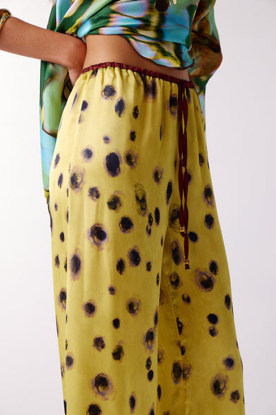 Pull-on pants with contrast elasticated waist with drawstring